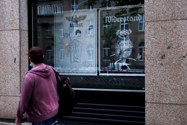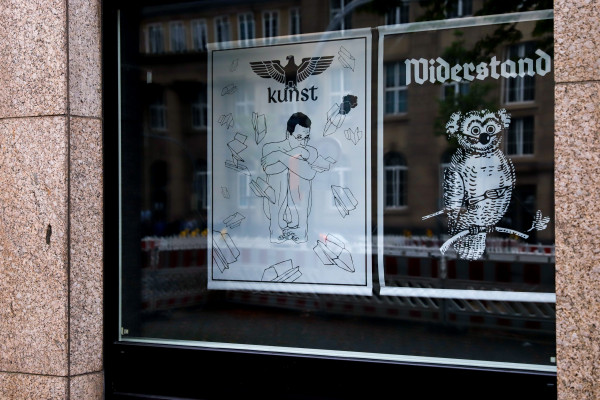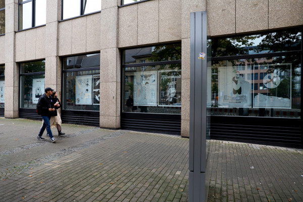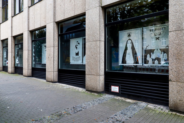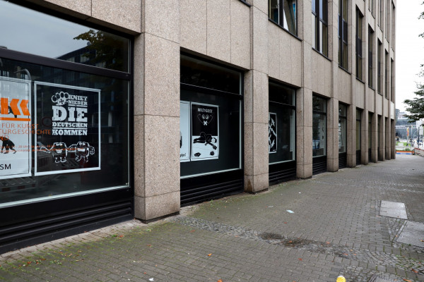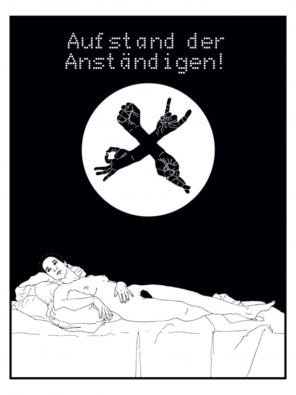 A series of posters in graphic black and white has been created for the exhibition, which takes up and continues pictorial motifs from the series shown in the exhibition. These 17 posters (each 150 x 100 cm) will be displayed in the city during the exhibition (on advertising pillars and billboards) as well as in the museum’s windows facing Königswall.
